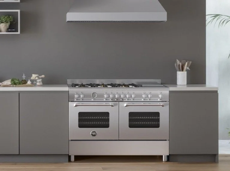 All range cookers feature different sized burners including the high-performance burner from low simmer to high output and larger models have the option for Induction Hob. The squared, one-piece high-efficiency stainless steel hobs are easy to clean. On gas models, the distinctive Bertazzoni Master Series dial gauge displays the heating progress of the oven. Range cookers are controlled by large round soft-touch knobs and feature professional-style handles.